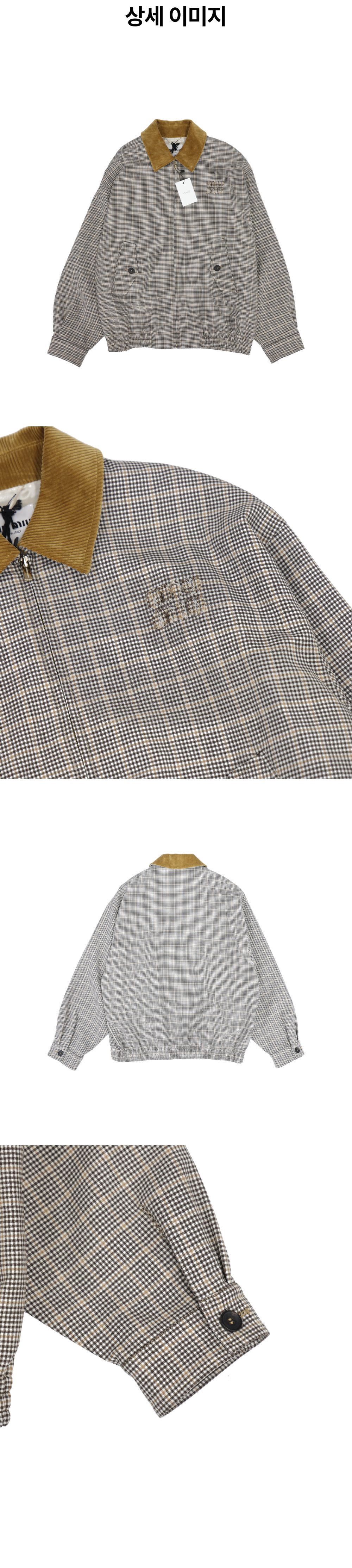 미우미우 ML1181 더블 체크 위브 오버핏 울 블루종 자켓 브라운