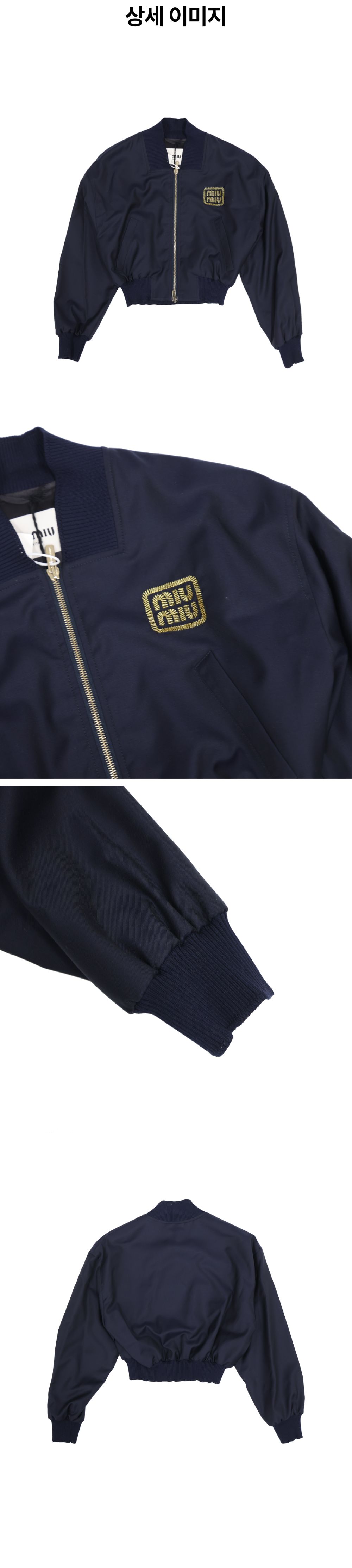 미우미우 ML936 크롭 바타비아 봄버 바시티 자켓 울 네이비