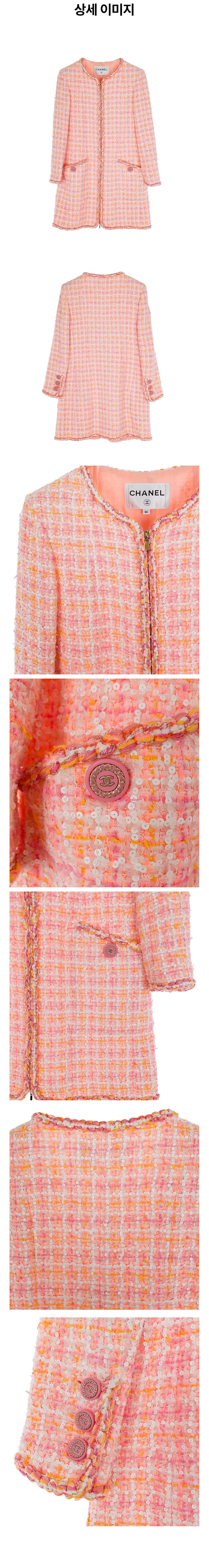 샤넬 19C 글리터 트위드 집업 롱 자켓 36 핑크/멀티컬러(6ET0027)