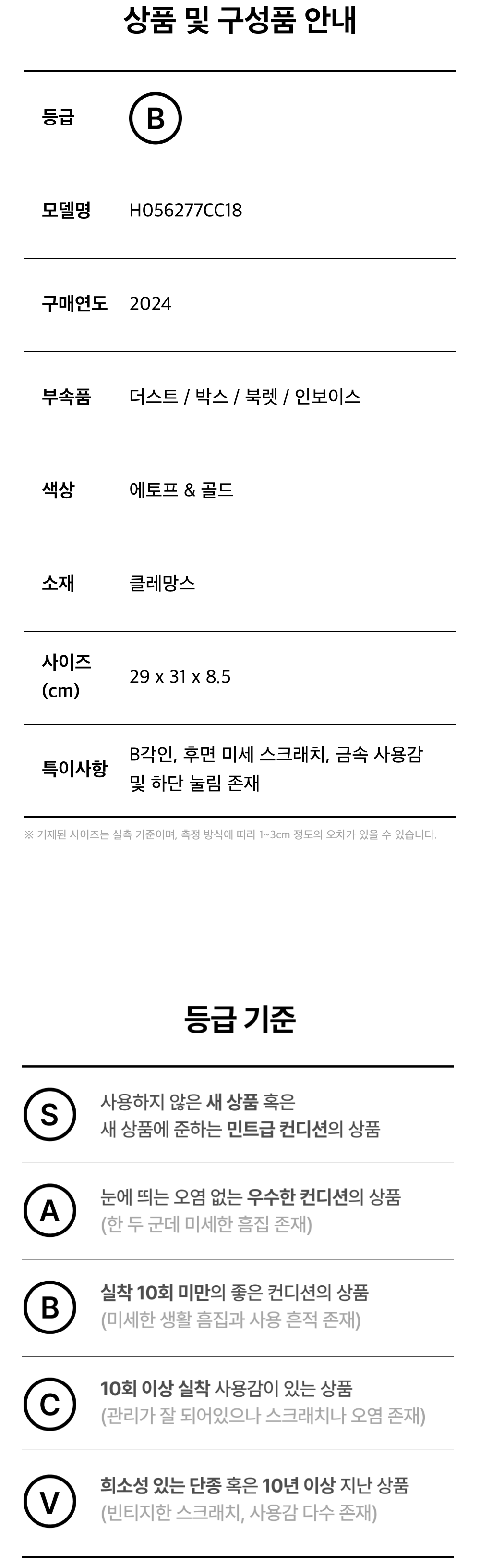 에르메스 H056277CC18 에블린 III 29 백 클레망스 에토프 금장 B각인