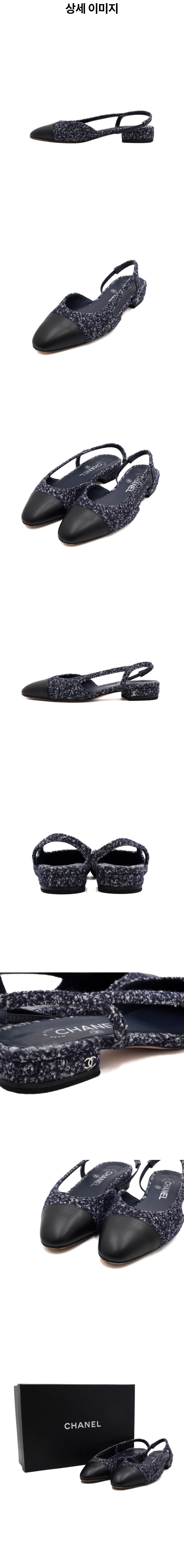샤넬 G31319 네이비 블루 트위드 샤이니 카프스킨 슬링백 은장CC 여성 구두aa60428