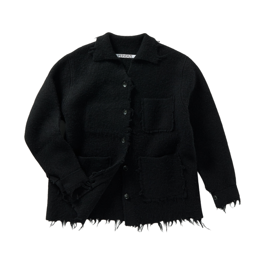 (W) 퍼버즈 크래쉬 니트 코트 블랙