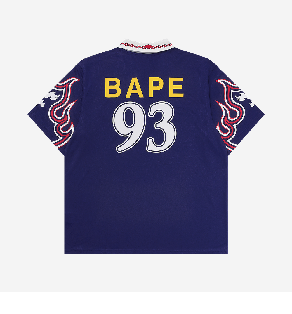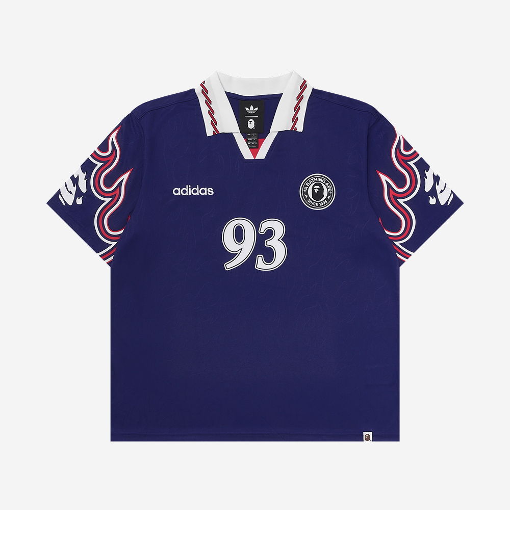 Adidas x BAPE Short Sleeve Flames Jersey Japan Blue - US Sizing (Non Marking Ver.)