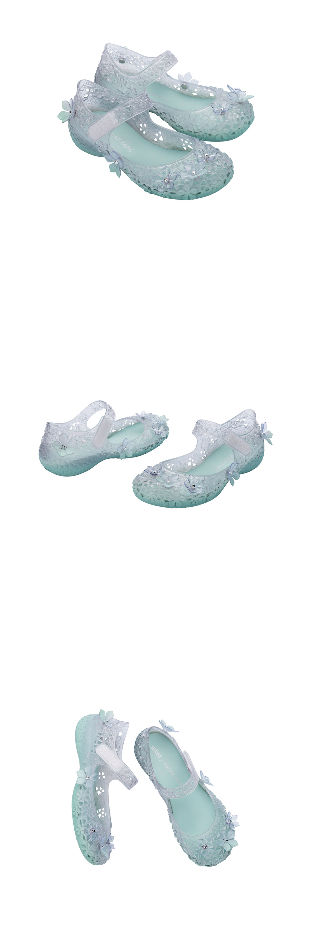 멜리사 x 수잔 팡 우먼 루나 블룸 스포티 발레리나 그린입니다. - 수잔 팡의 시그니처 플라워 패턴이 적용된 투명 젤리 슈즈 - 입체적인 꽃 장식과 그린 컬러 그라데이션 디테일 - 안정적인 착화감을 돕는 발등 벨크로 스트랩 - 멜리사 특유의 유연하고 향기로운 Melflex 소재 사용