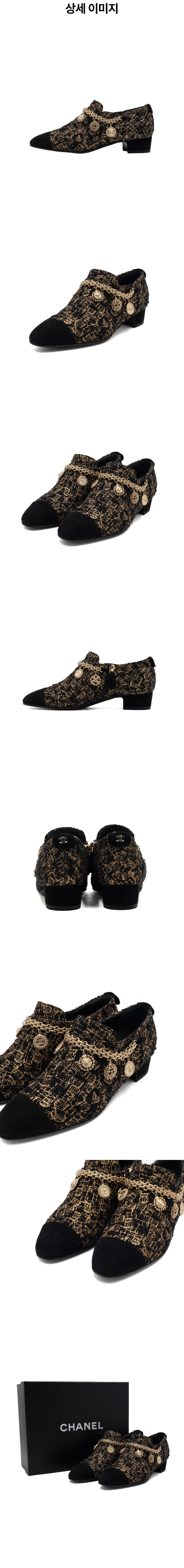 샤넬 G31689 블랙 골드 트위드 스웨이드 금장 체인 참로고 여성 구두aa60552
