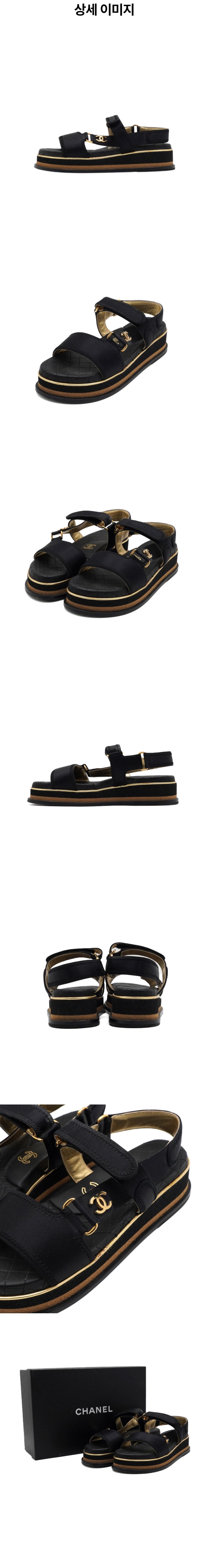 샤넬 G32676 CC 골드 플랫폼 블랙 새틴 벨크로 여성 샌들aa60532