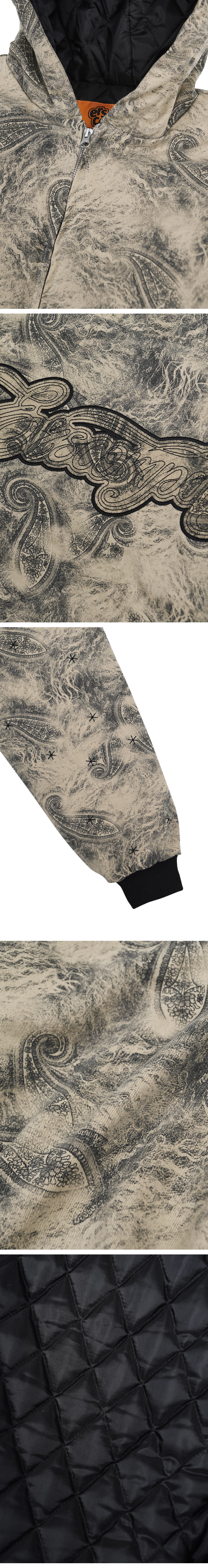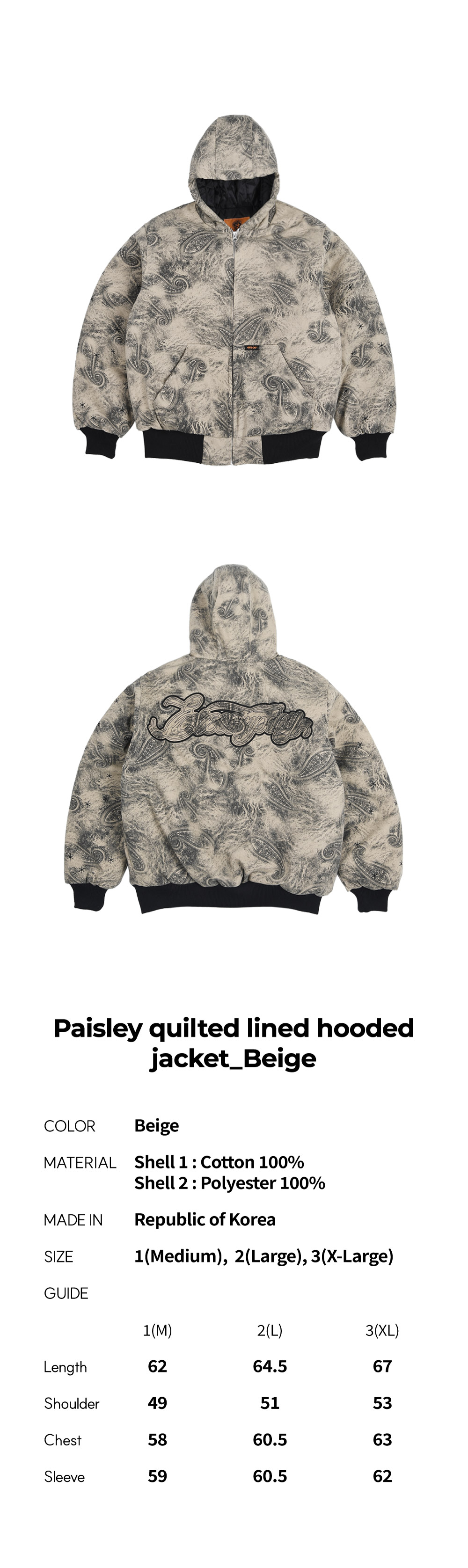 이알에스코 페이즐리 퀼티드 라인 후드 자켓 베이지
