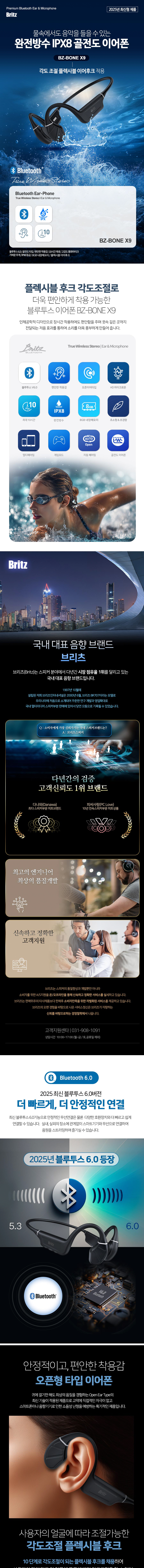 브리츠 BZ-BONE X9 완전방수 모든 스포츠 골전도 블루투스 이어폰