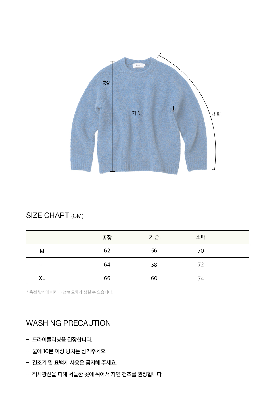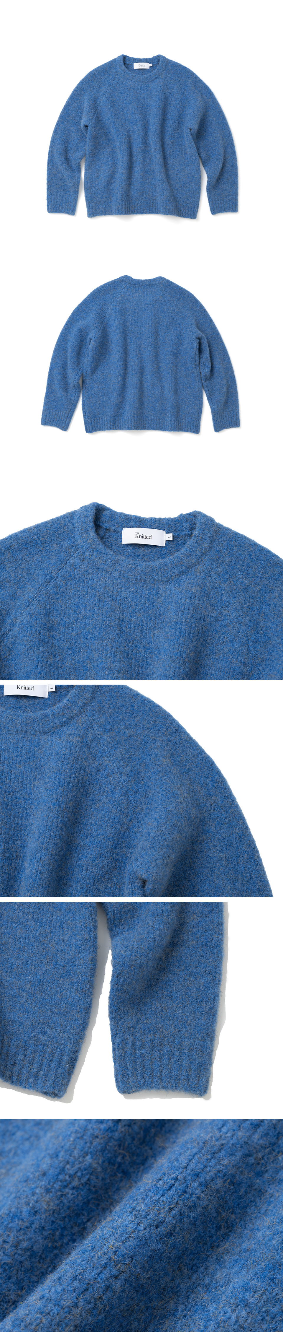 니티드 부클 래글런 크롭 라운드 니트 블루