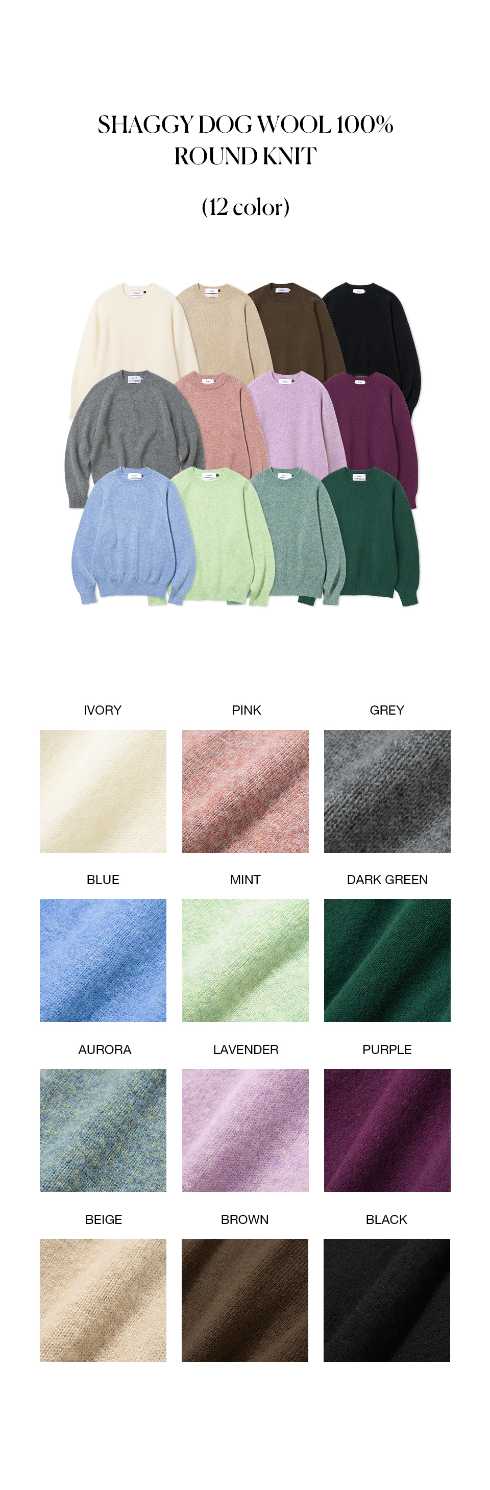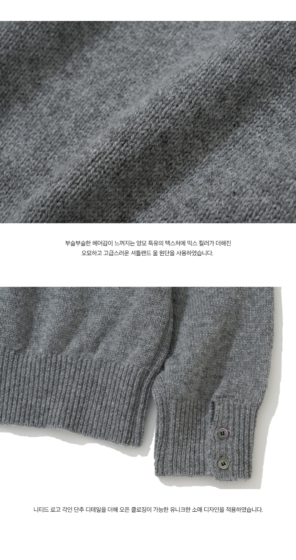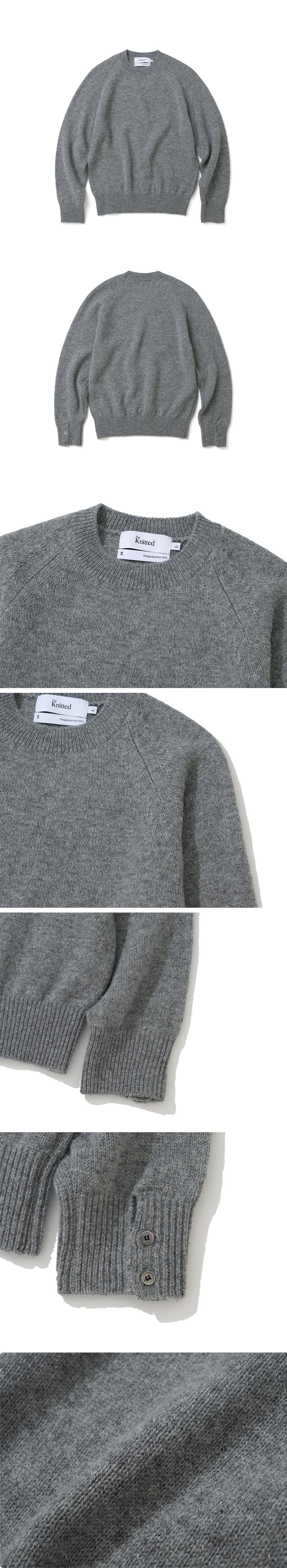 니티드 쉐기독 울 100% 라운드 니트 그레이