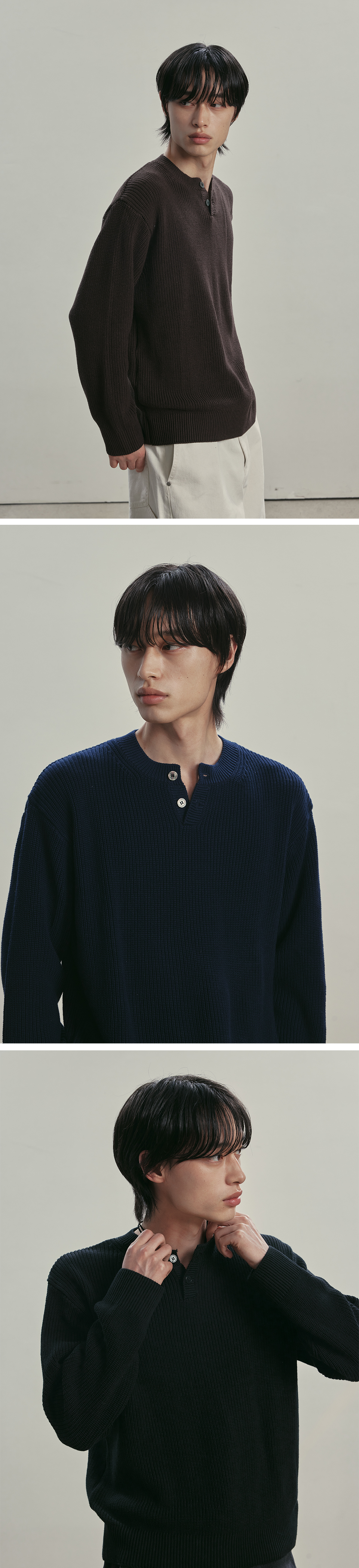 니티드 코튼 헨리넥 와플 니트 스위스
