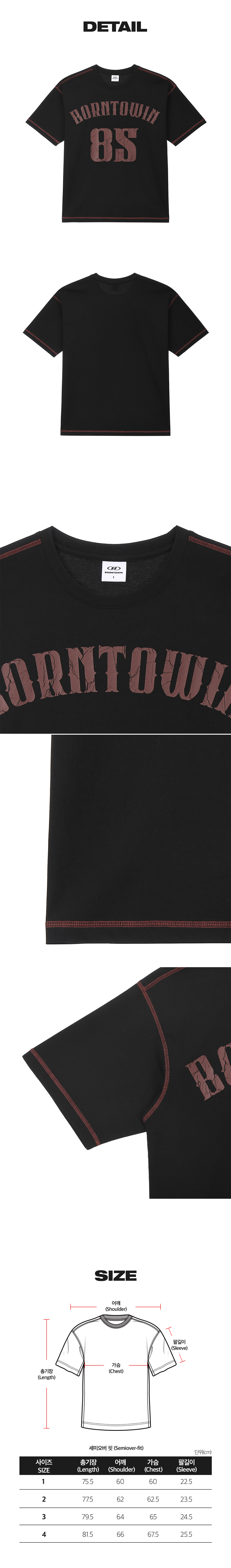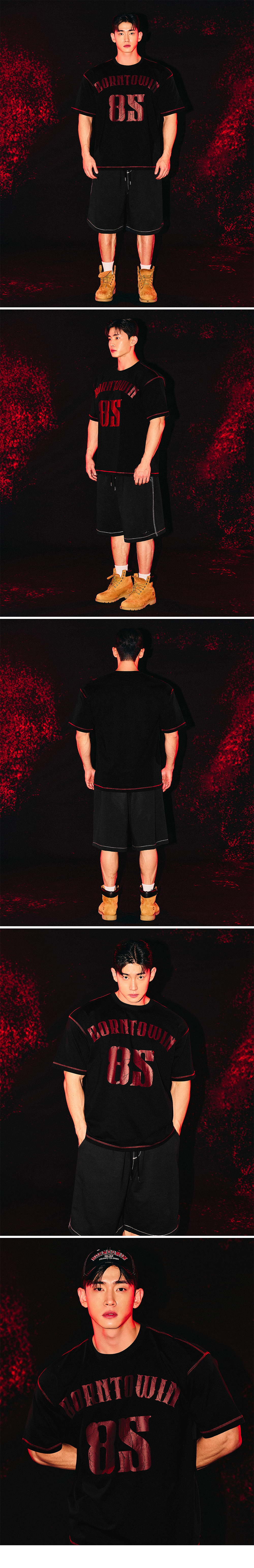 본투윈 레드 스티치 세미 오버핏 티셔츠 블랙