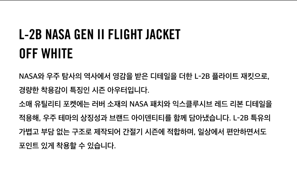 알파 인더스트리 L-2B 나사 젠 II 플라이트 자켓 오프화이트