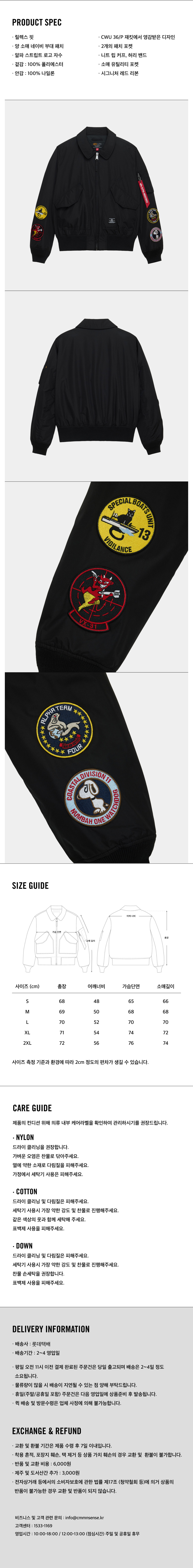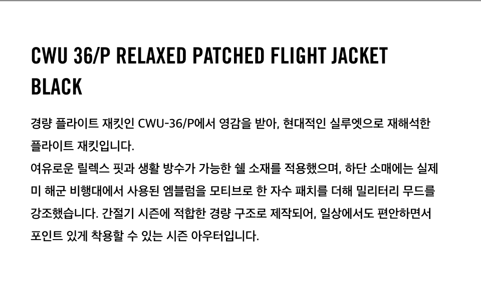 알파 인더스트리 CWU-36/P 릴랙스드 패치드 플라이트 자켓 블랙