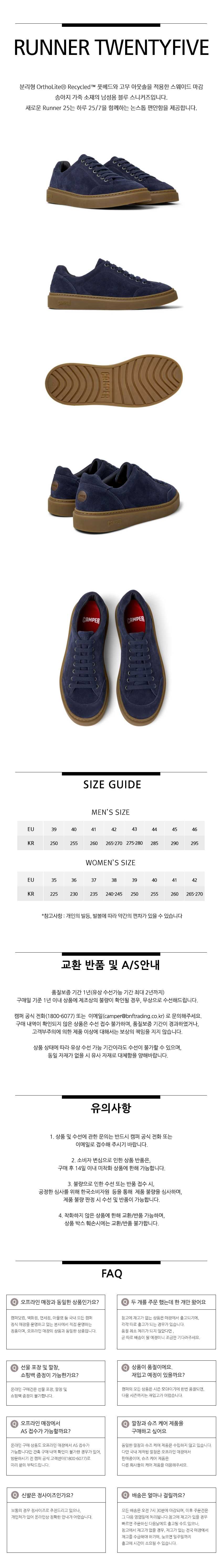 캠퍼 남성 러너 트웬티파이브 스니커즈 네이비