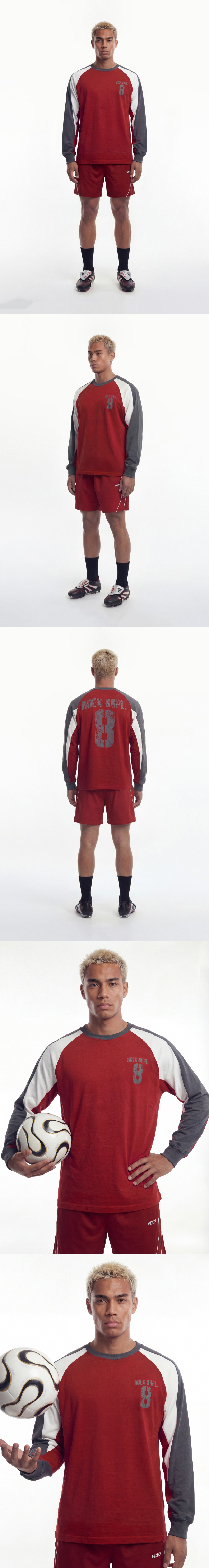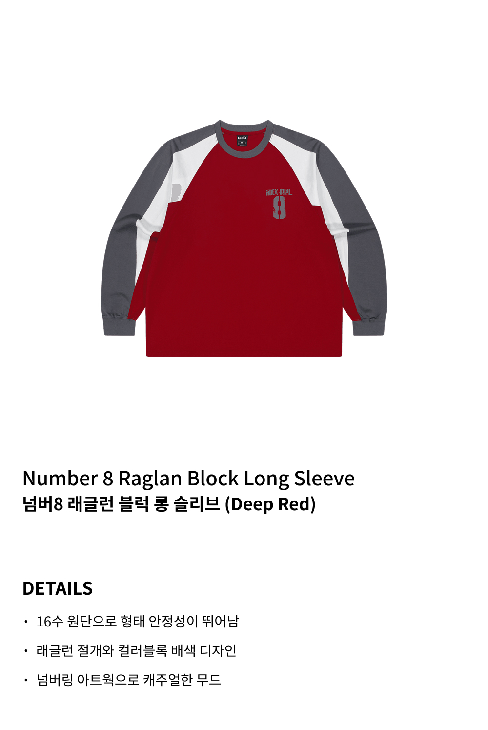 에이치덱스 넘버8 래글런 블럭 롱 슬리브 딥 레드