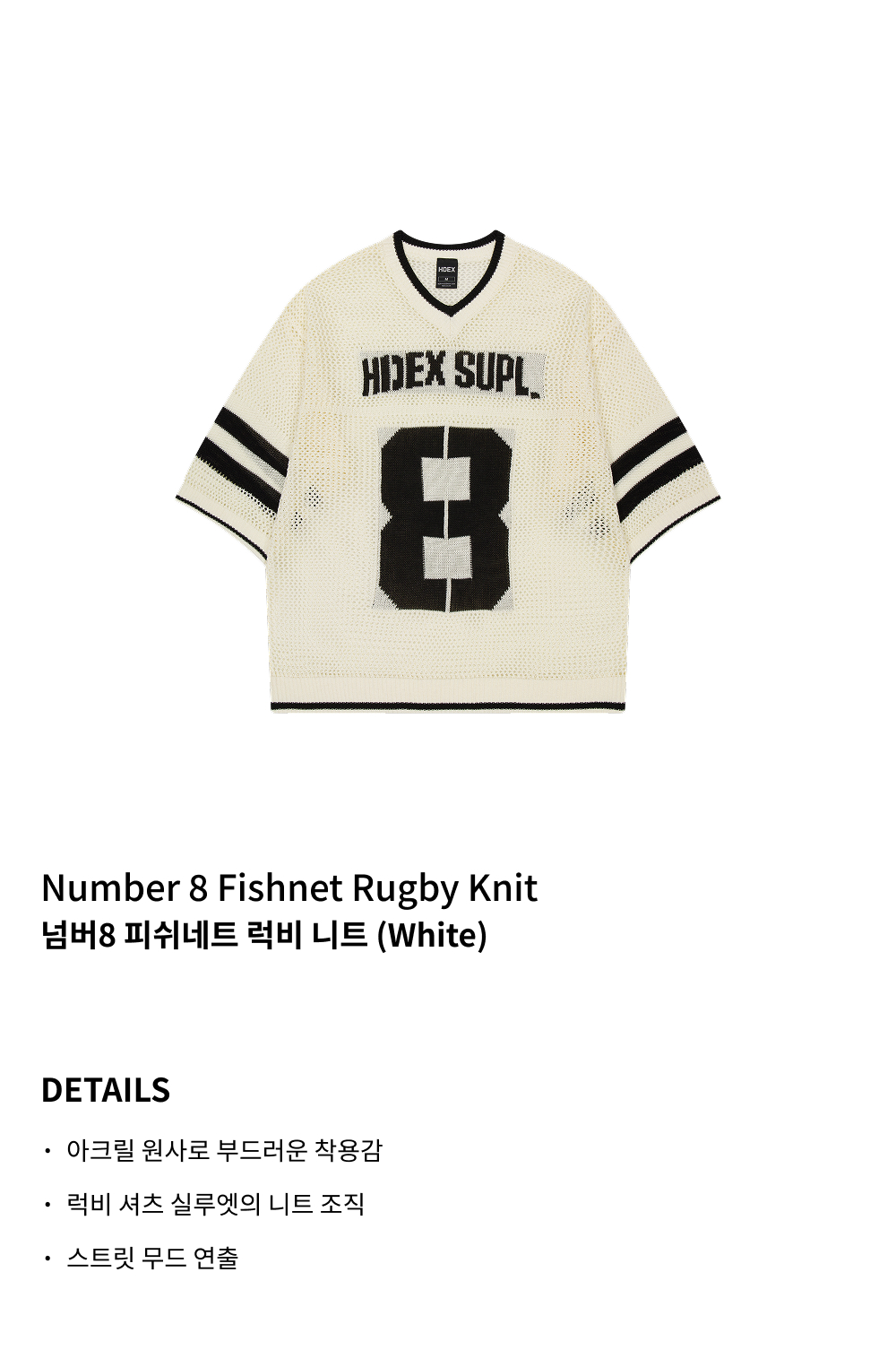 에이치덱스 넘버8 피쉬네트 럭비 니트 화이트