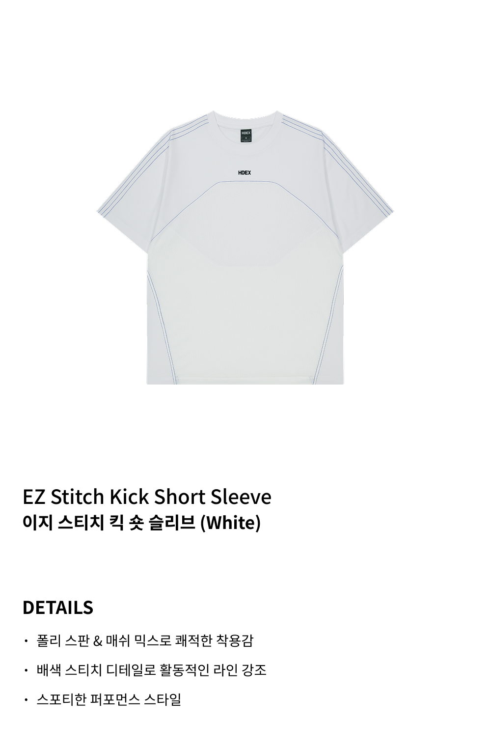 에이치덱스 이지 스티치 킥 숏 슬리브 화이트
