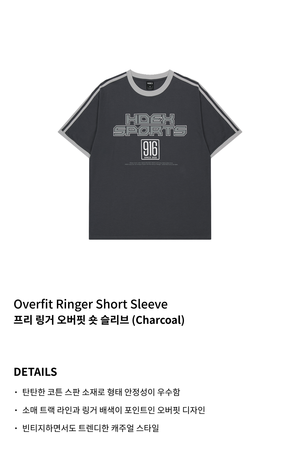 에이치덱스 프리 링거 오버핏 숏 슬리브 차콜