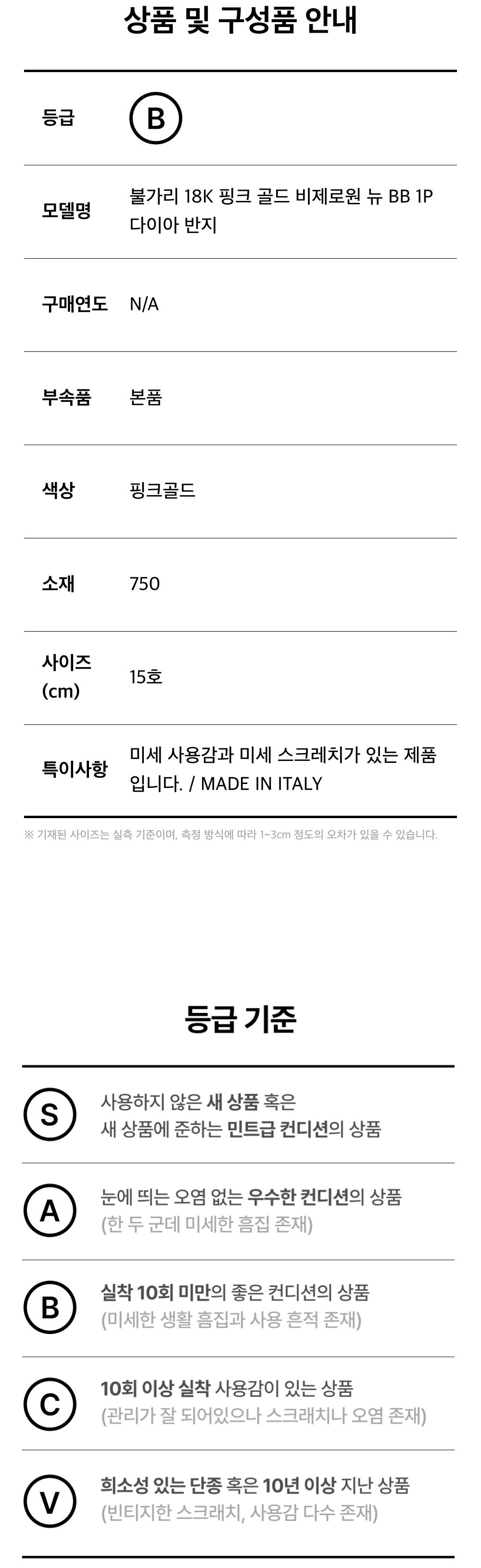 불가리 18K 핑크 골드 비제로원 뉴 BB 1P 다이아 반지 C-B48141