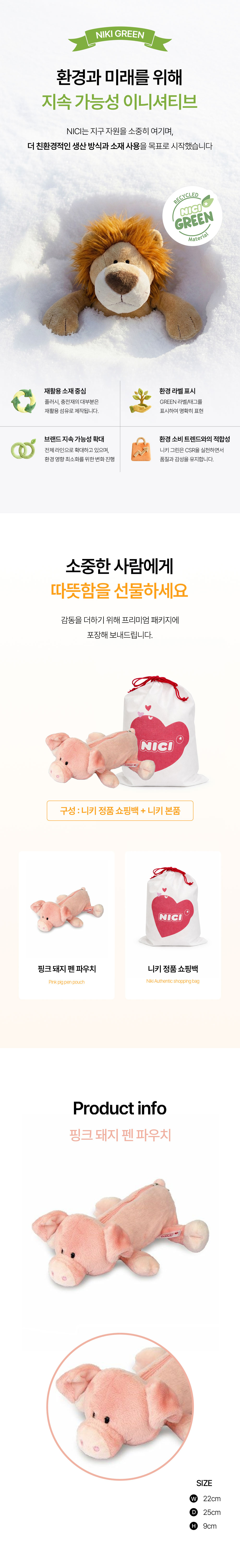 니키 핑크 돼지 펜 파우치 (필통)