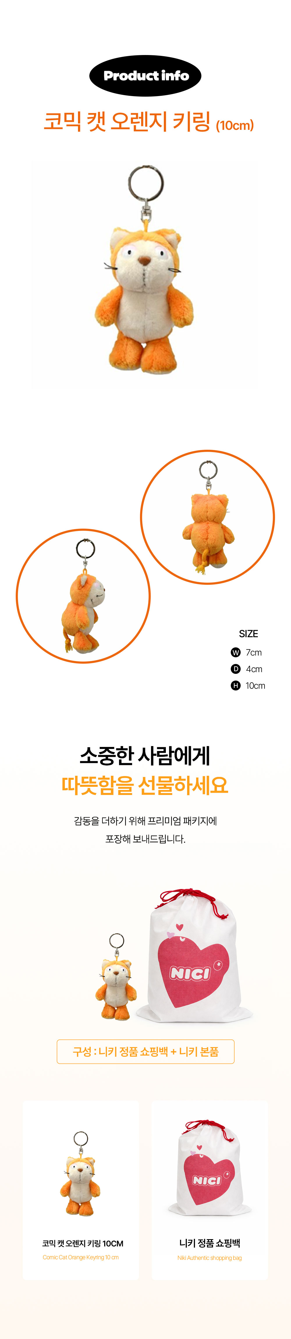 니키 코믹 캣 오렌지 키링 10cm