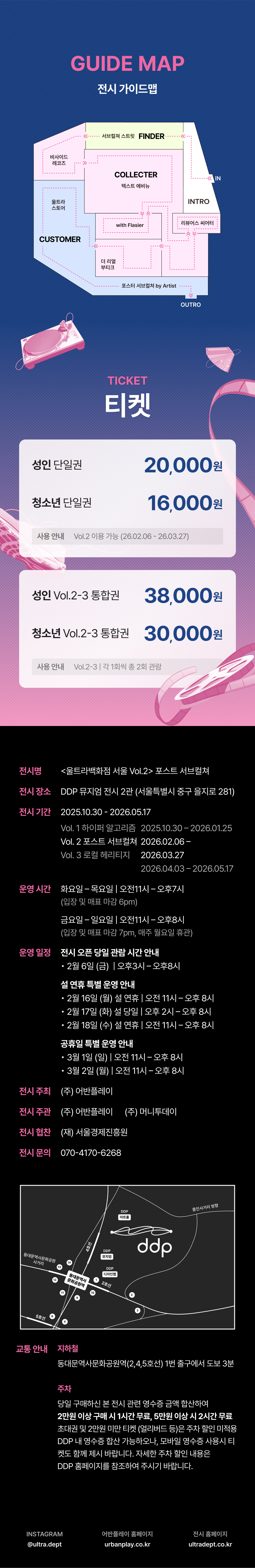 [전시 오픈 당일 관람 시간 안내] 2월 6일 (금) 오후 3시 - 8시 [설 연휴 특별 운영 안내] 2월 16일 (월) 설 연휴 : 오전 11시 - 오후 8시 2월 17일 (화) 설 당일 : 오후 2시 - 오후 8시 2월 18일 (수) 설 연휴 : 오후 11시 - 오후 8시
