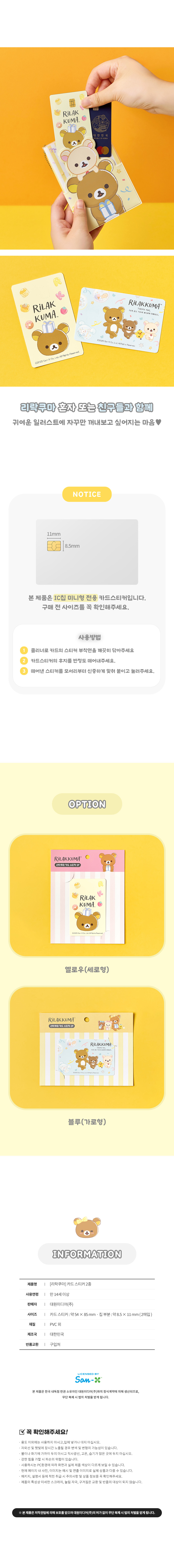 대원미디어 리락쿠마 신용 체크 카드 스티커 옐로우(세로형)