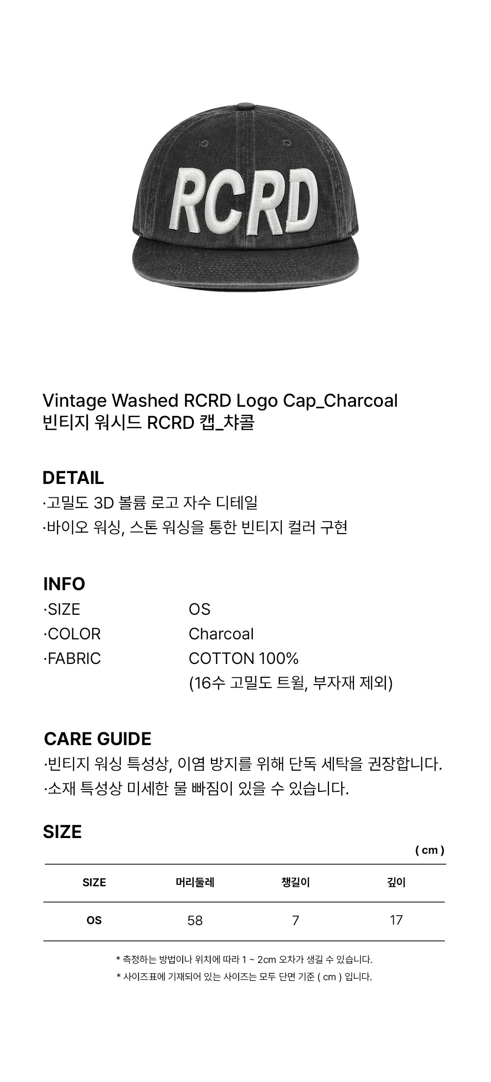 슬로우 레코드 하우스 빈티지 워시드 RCRD 캡 챠콜