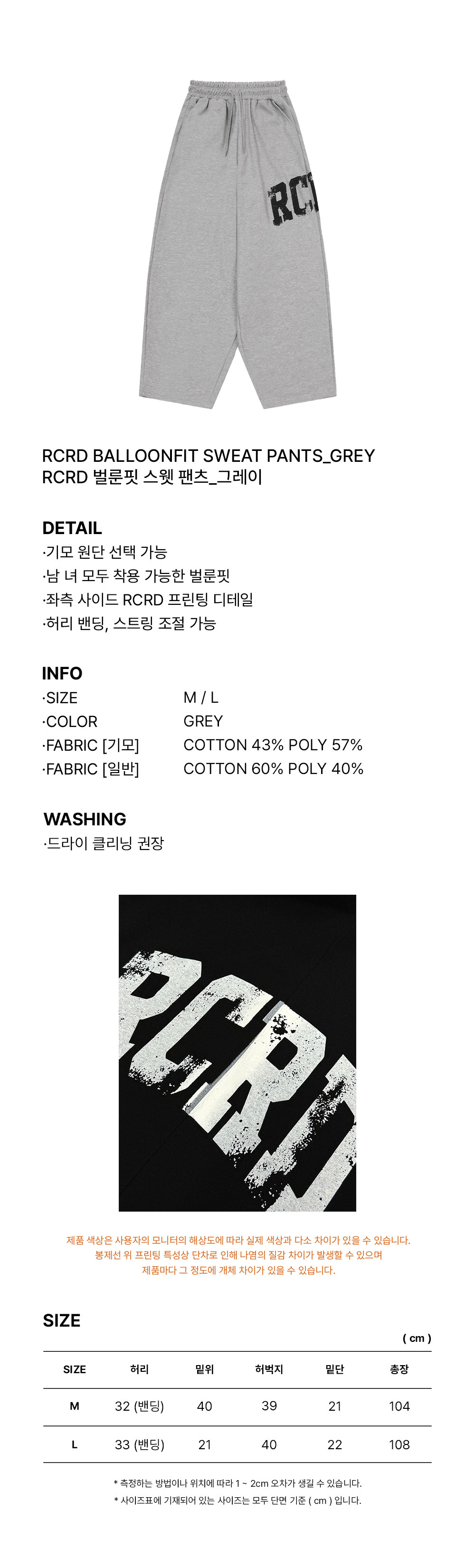 슬로우 레코드 하우스 RCRD 벌룬핏 스웻 팬츠 그레이 (기모원단추가)