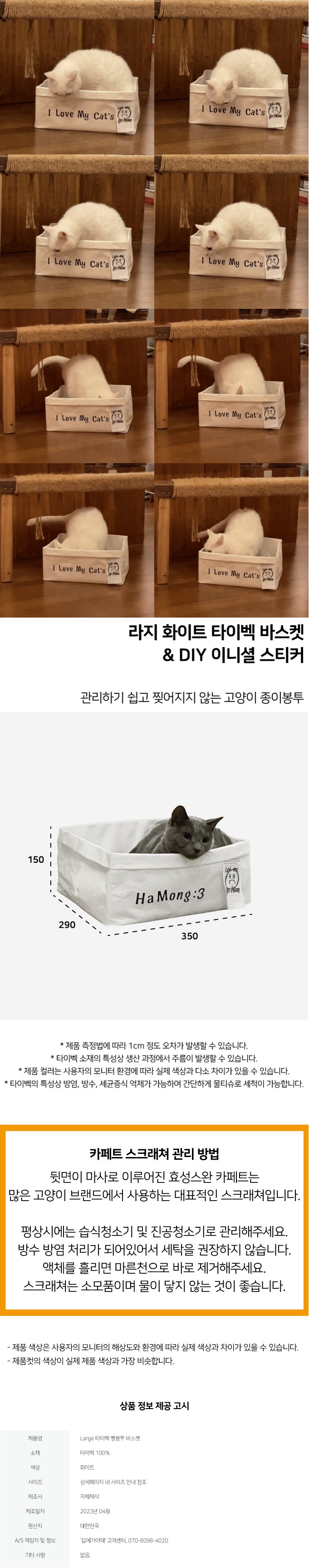 집에가야돼 라지 고양이 화이트 타이벡 바스켓