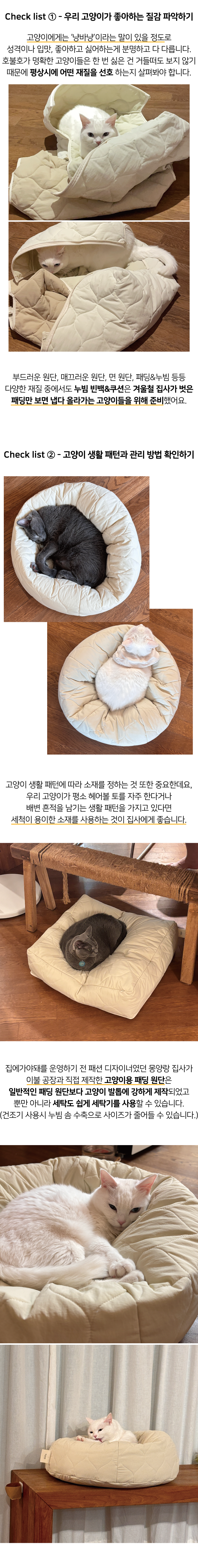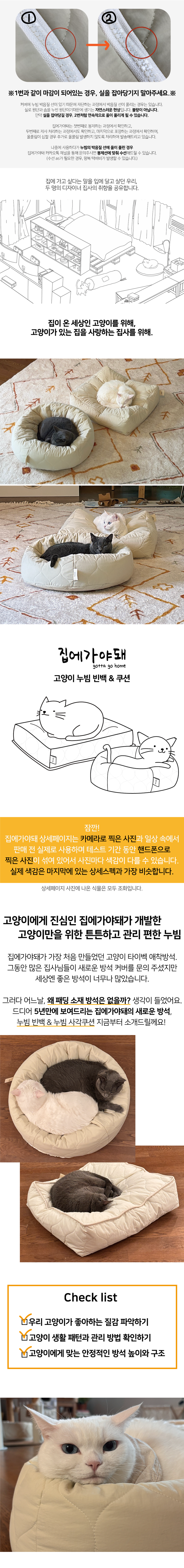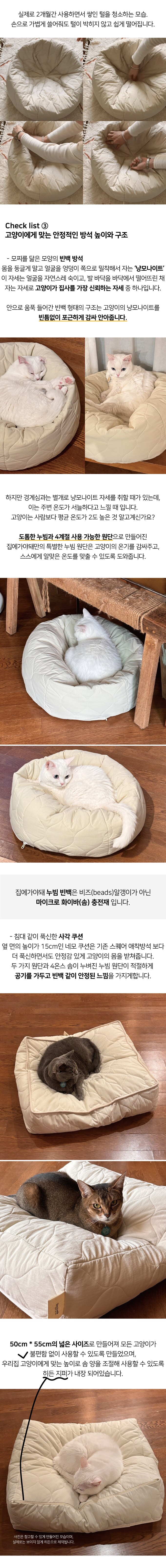 집사의 패딩만 보면 올라가는 고양이들을 위한 쿠션 집에가야돼 누빔 빈백의 충전재는 마이크로화이바(솜)입니다.