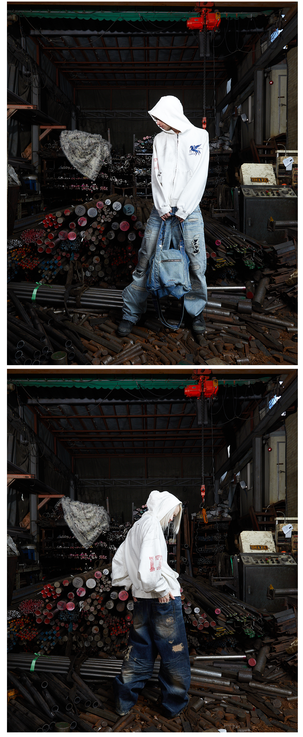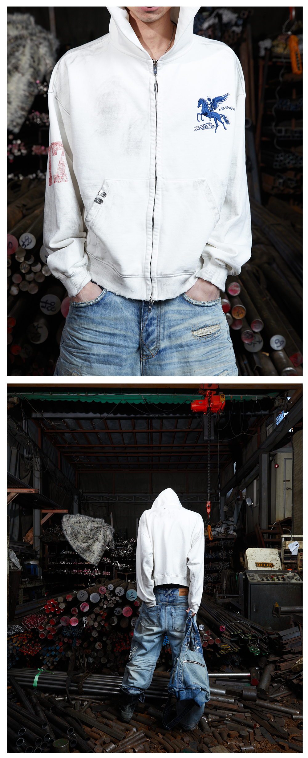 PACOSPLY Dirty Falling Angel Zip Up Hoodie Dirty White