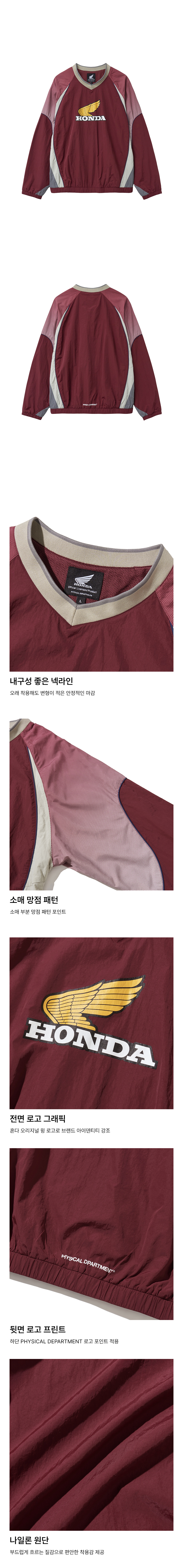 혼다 빈티지 로고 스피드 트랙 나일론 롱슬리브 버건디