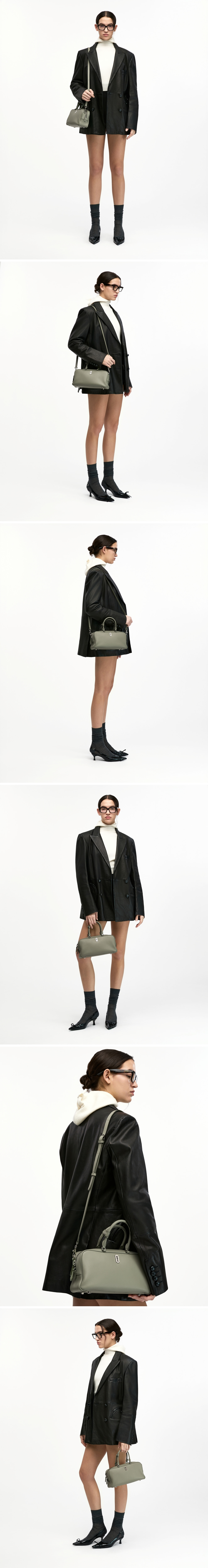 힘 있는 소재를 사용하여 스퀘어 쉐입이 살아있는 토트백유연한 핸들로 착용 방법에 따라 다르게 연출 가능