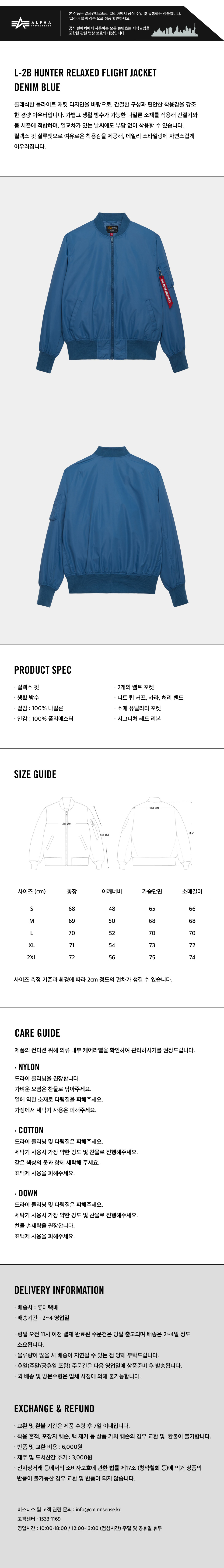 알파 인더스트리 L-2B 헌터 릴랙스드 플라이트 자켓 데님 블루