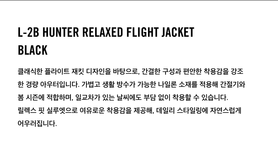 알파 인더스트리 L-2B 헌터 릴랙스드 플라이트 자켓 블랙