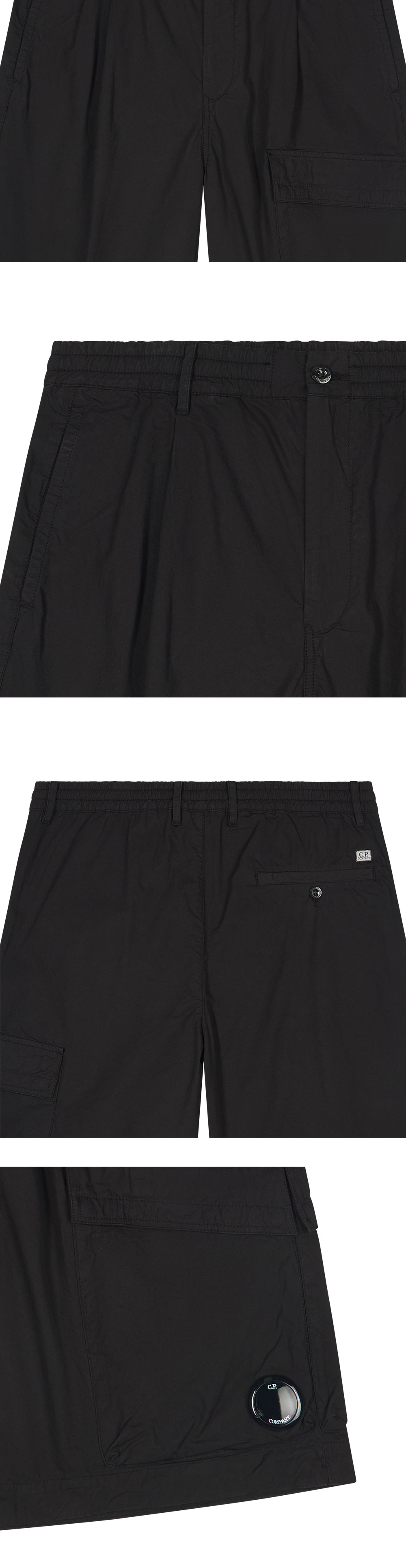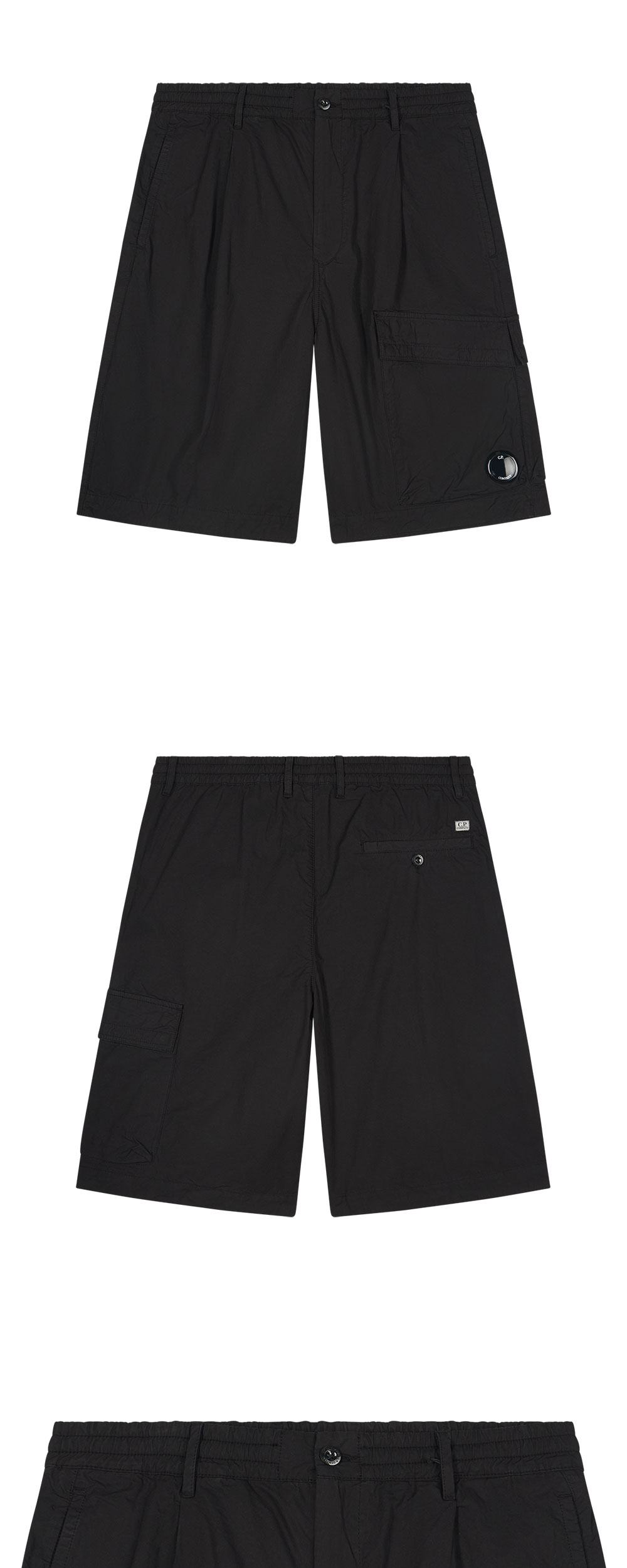 C.P. 컴퍼니 버뮤다 카고 블랙 입니다. - 왼쪽 카고 포켓의 시그니처 렌즈 디테일 - 실용적인 멀티 포켓과 클래식한 버뮤다 실루엣 - 데일리로 활용하기 좋은 깔끔한 블랙 컬러 *사이즈는 제품이 아닌 신체 치수를 참조합니다.