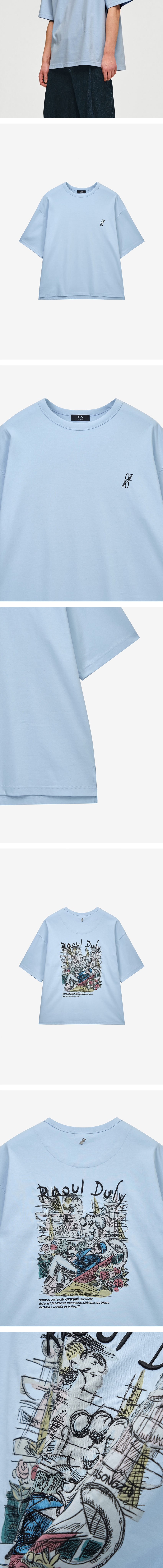 - 마드리갈 아트워크 티셔츠 - 소프트하고 탄탄한 터치감의 100% 코튼 실켓 원단 - 앞판 로고 자수 - 뒷판 라벨판에 로고 리벳 디테일 - 라울뒤피 삽화 아트워크 디자인을 디지털 프린팅에 자수로 표현