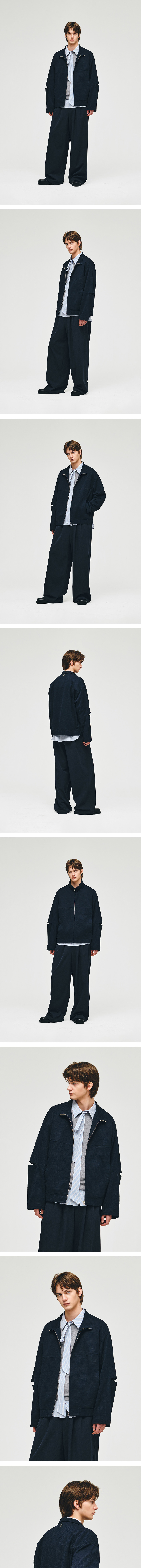 ZIOSONGZIO COLLECTION Sleeve Slit Harrington Jumper Navy