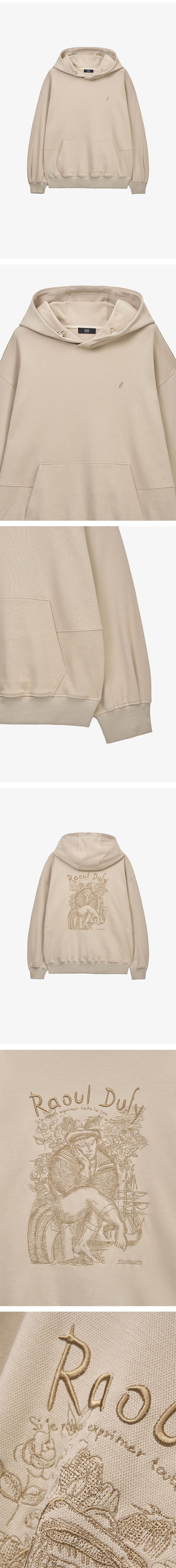 - 마드리갈 엠브로이드 후드 - 가슴에 심볼 로고 자수 - 등판에 라울뒤피 마드리갈 자수 아트워크 - 후드 내장 스트링