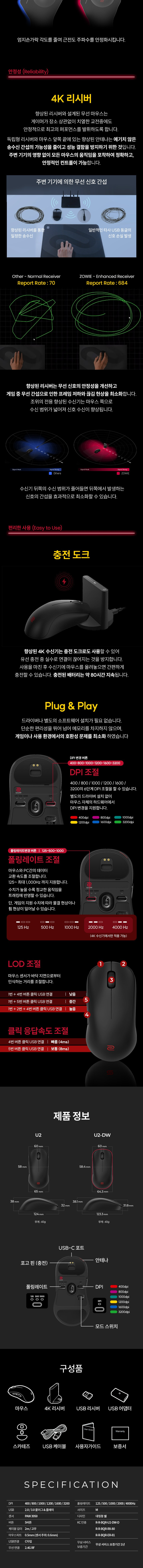 벤큐 조위 U2-DW (M) 4K 무선 e스포츠 경기용 게이밍 마우스