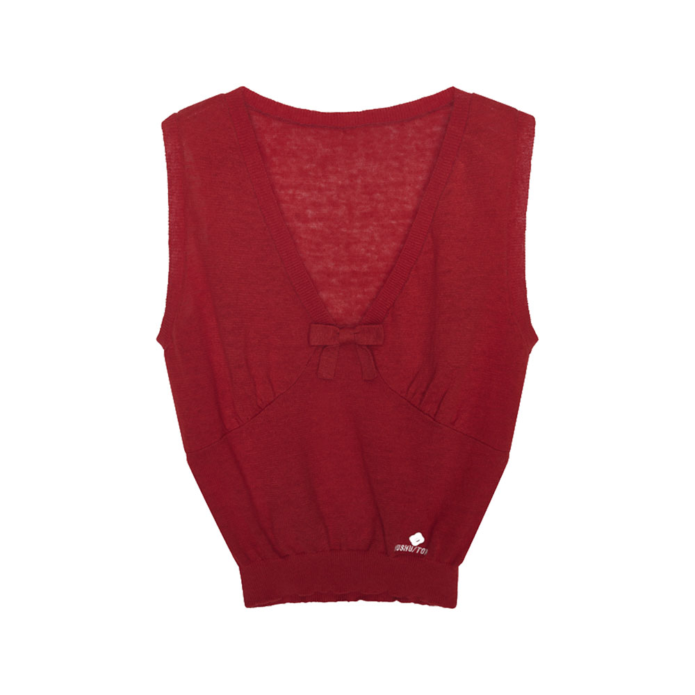 슈슈통 우먼 보우 디테일 브이넥 니트 탱크 레드 - 26SS