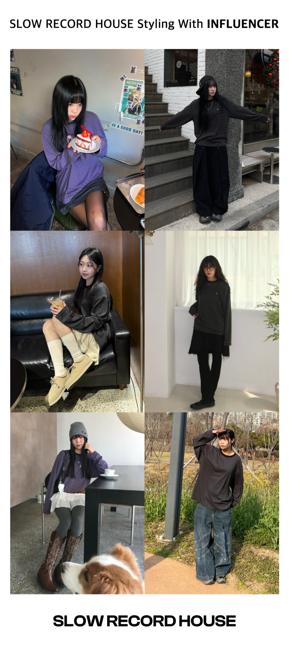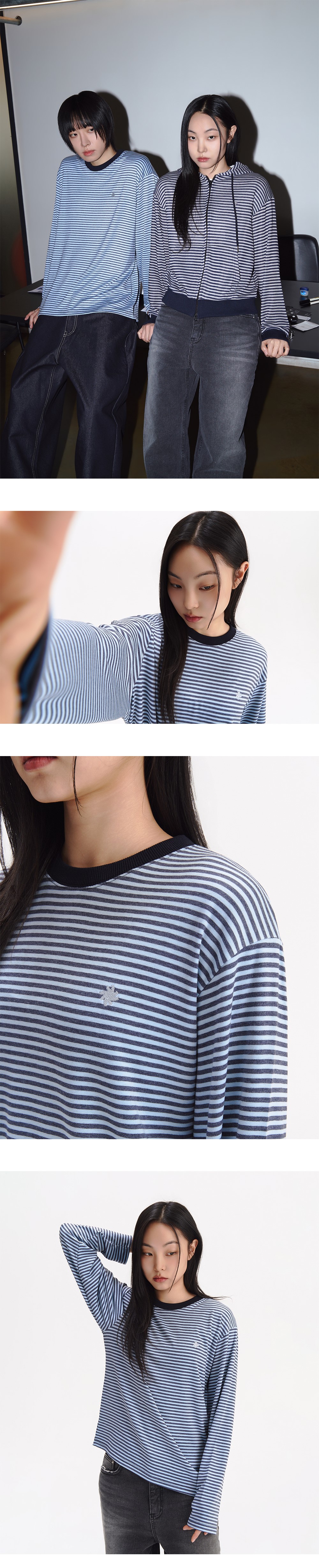 슬로우 레코드 하우스 스트라이프 롱슬리브 블루