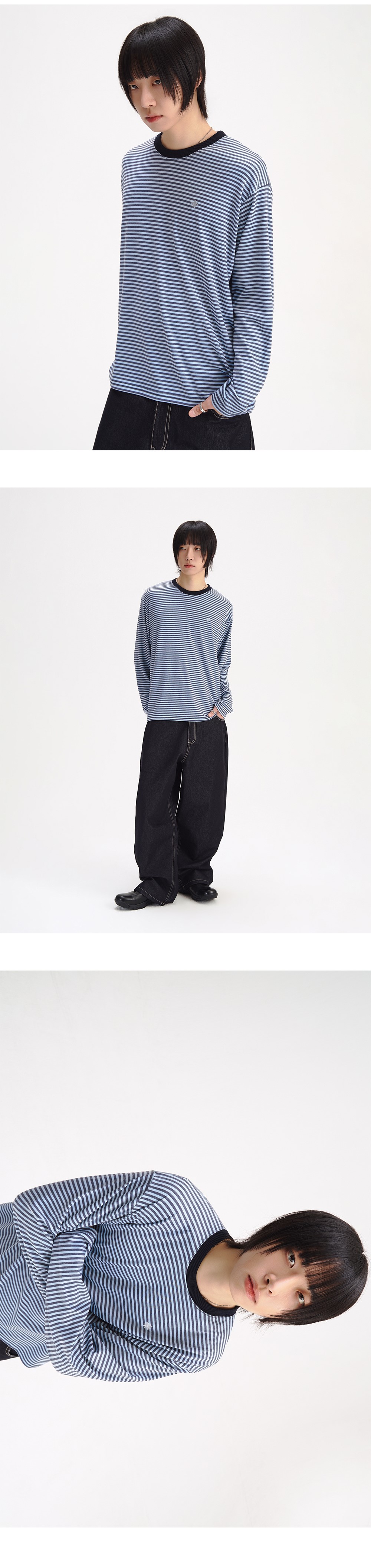 SLOW RECORD HOUSE Stripe Long Sleeve Blue