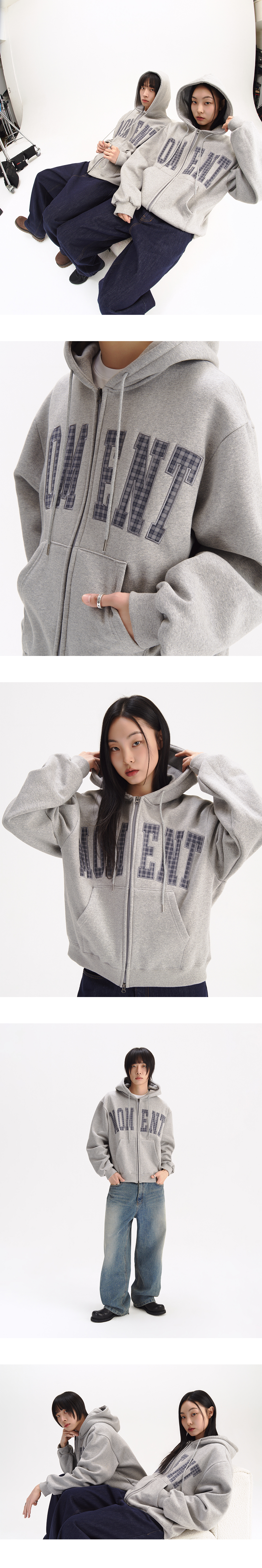 슬로우 레코드 하우스 모먼트 후드 집업 체크