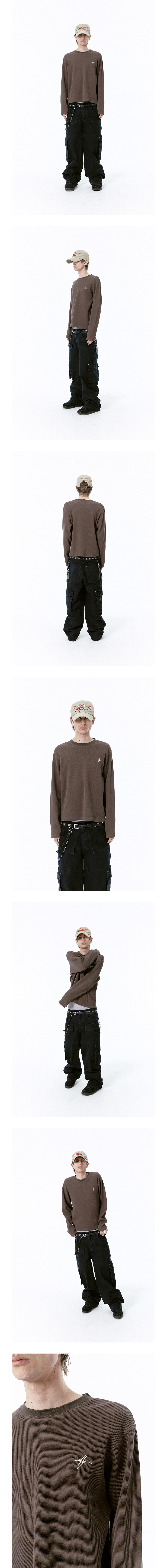 SHELL : COTTON 98% / POLYURETHANE 2% - 레귤러핏 - 세미 크롭기장 - 와플 패브릭 - 넥 구제디스 디테일 - 전면 가슴 로고자수 디테일