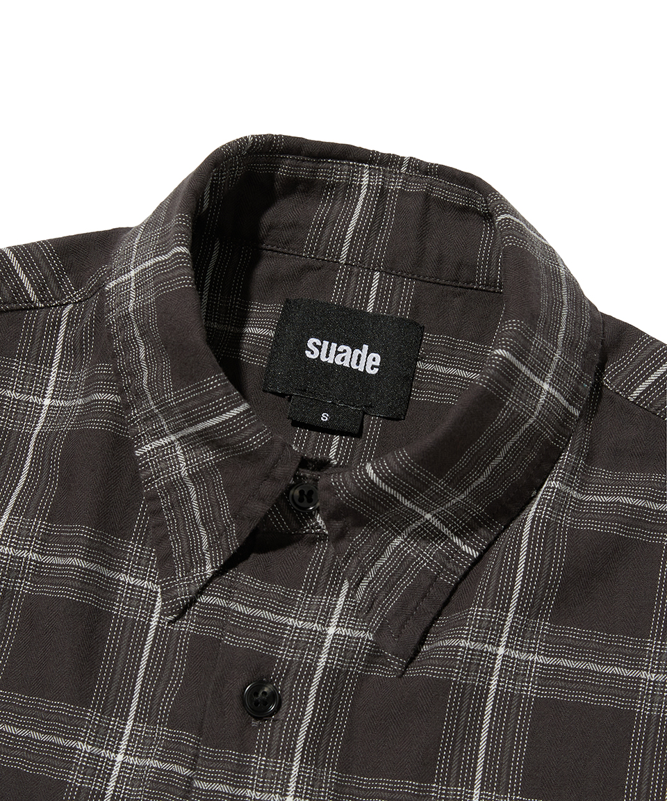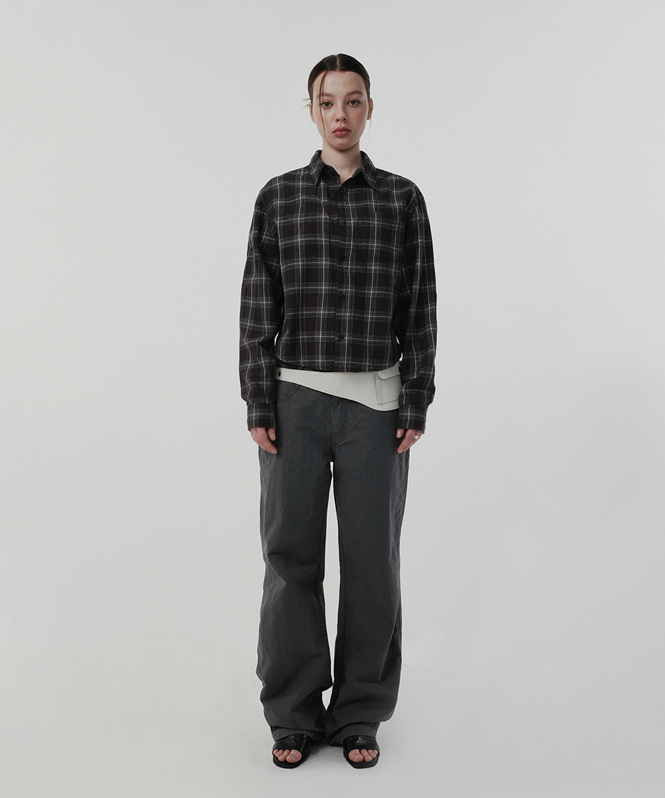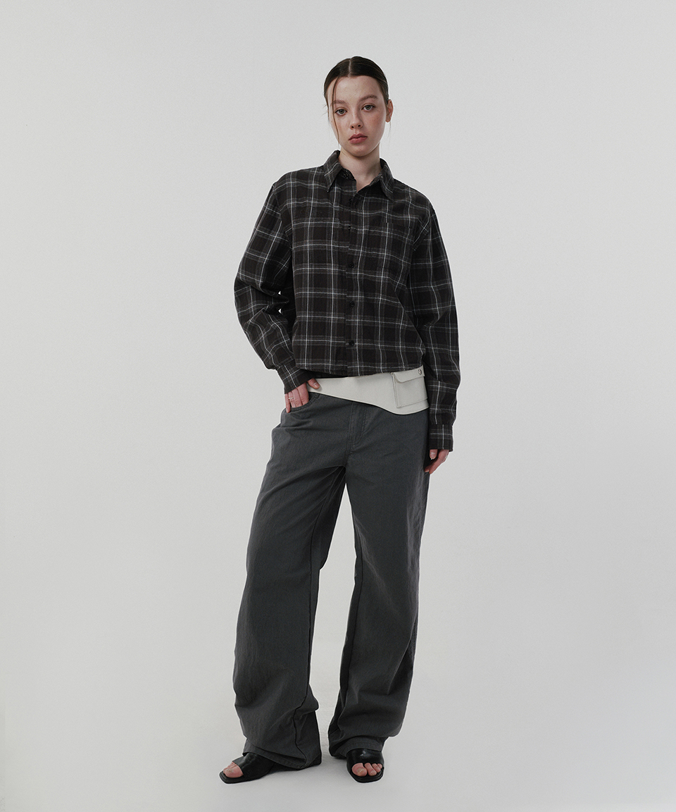 스웨이드 크롭 체크 셔츠 그레이