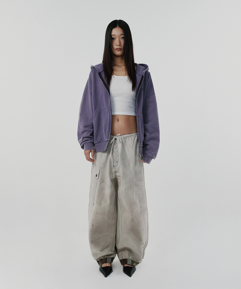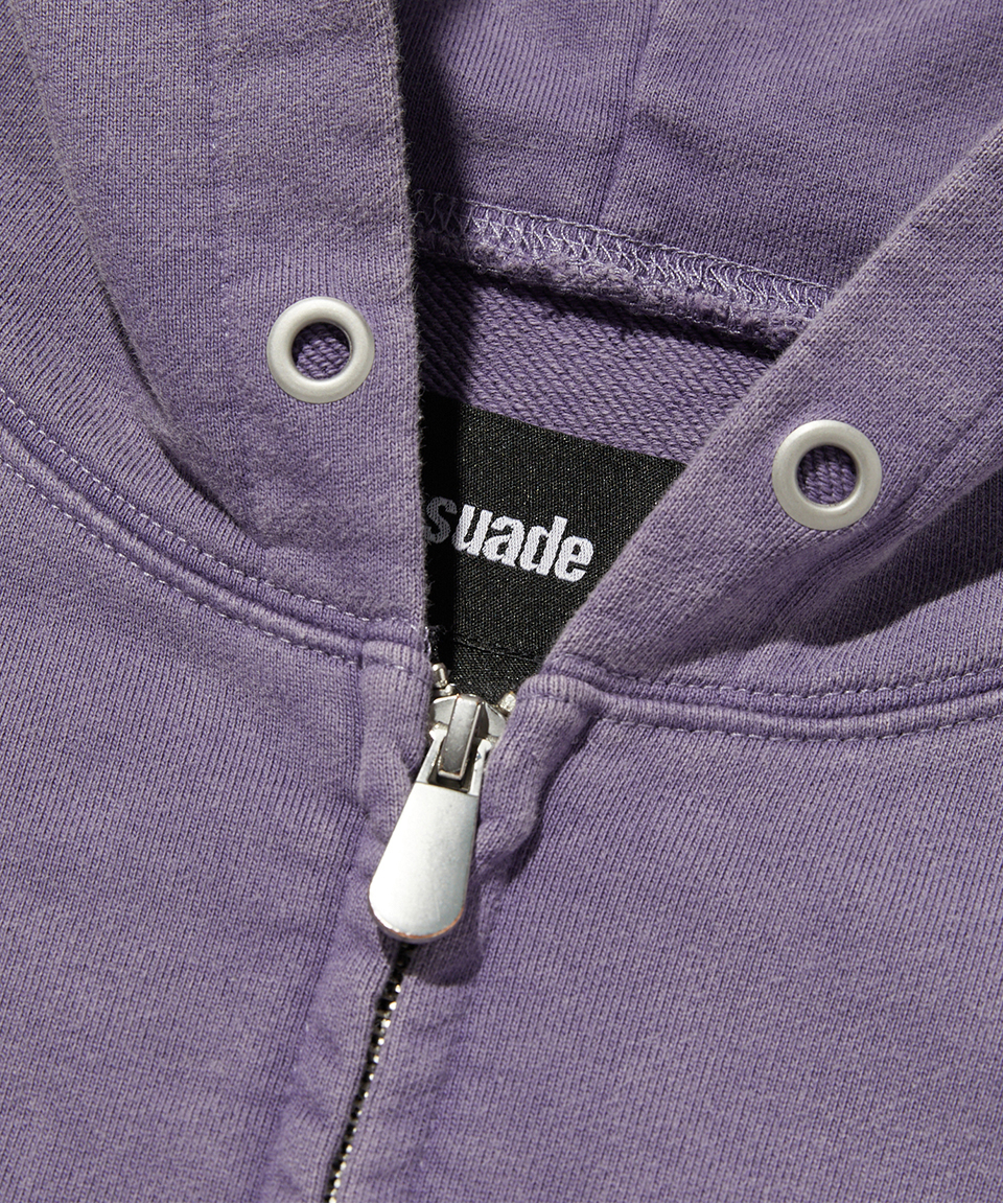 스웨이드 크롭 워시드 후드 집업 퍼플
