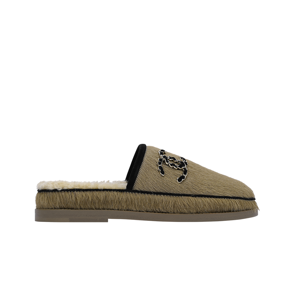(W) 샤넬 뮬 카프스킨 스웨이드 카프스킨 & 베이지 블랙